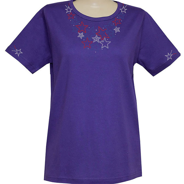 Americana Shooting Stars Short Sleeve Scoop Neck - S / Purple is backordered and will ship as soon as it is back in stock.